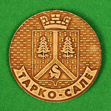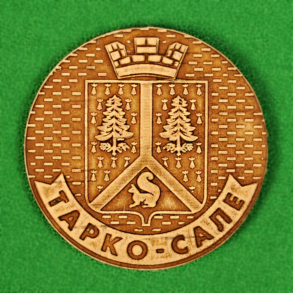 Магнит из бересты с тиснёным изображением герба Тарко-Сале. Магнит на холодильник из природных материалов: бересты и берёзы